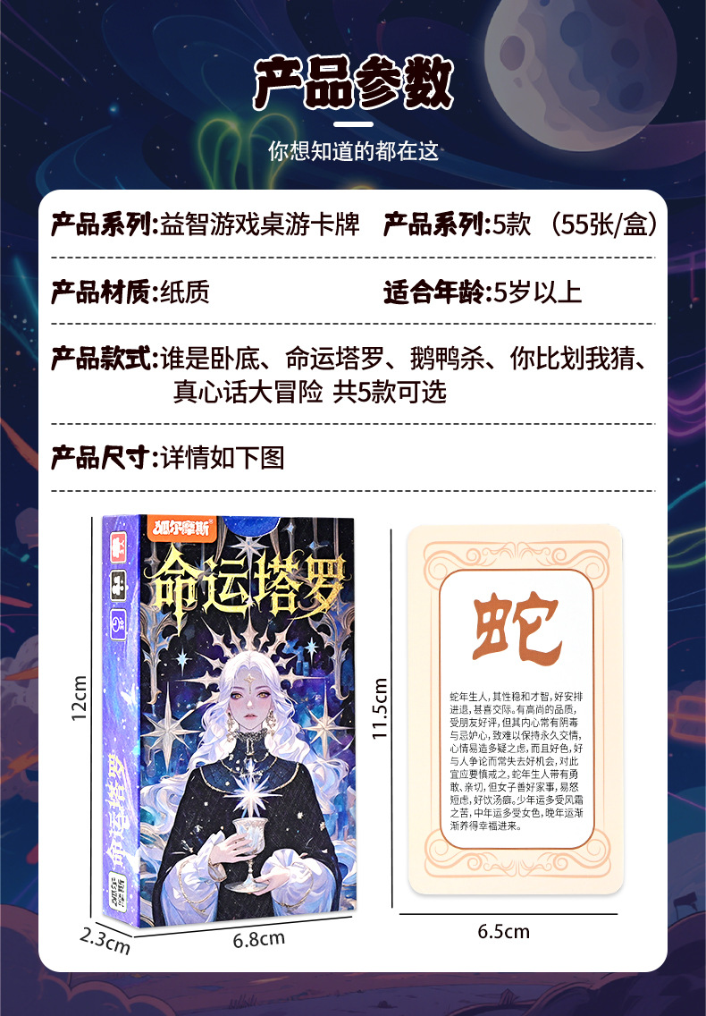 真心话冒险桌游卡牌心灵命运塔罗天黑了请闭眼多人团建旅行益智