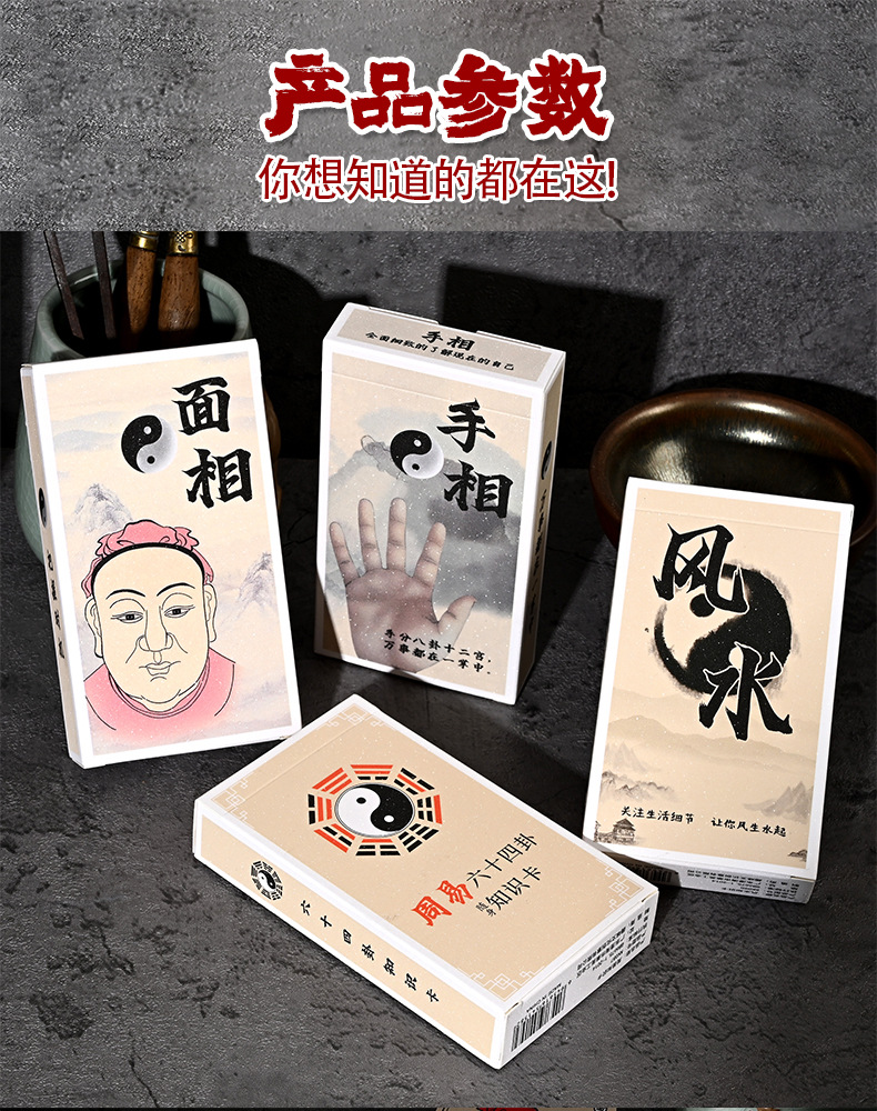 工厂直供周易六十四挂纸牌游戏寻龙分金风水手相面相卡牌风水卡牌