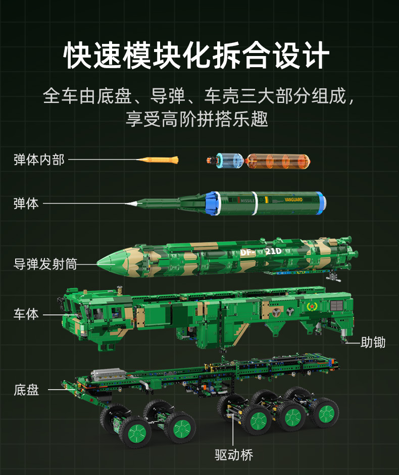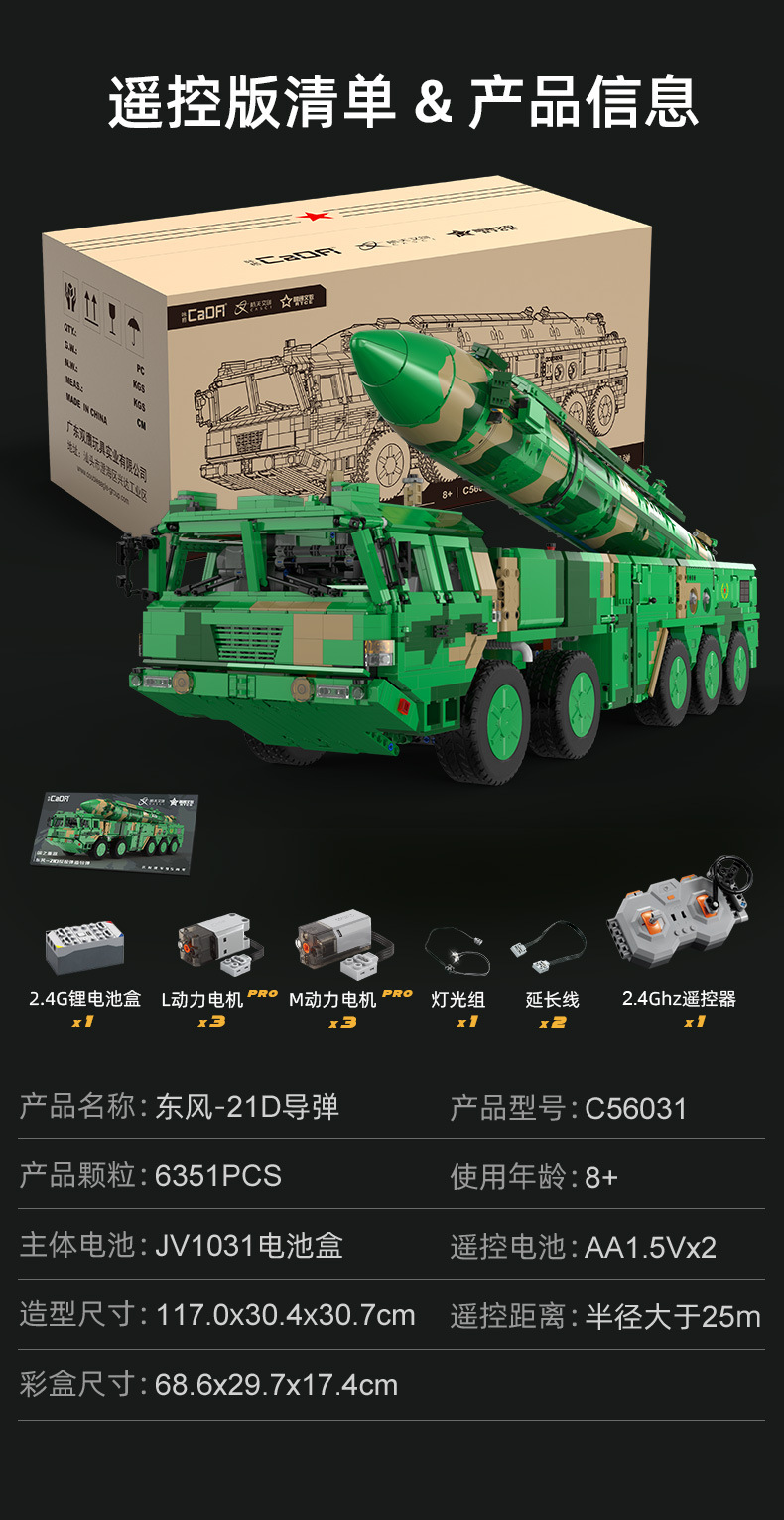 C56031双鹰积木东风21d反舰弹道导弹高难度兼容乐高拼装男孩