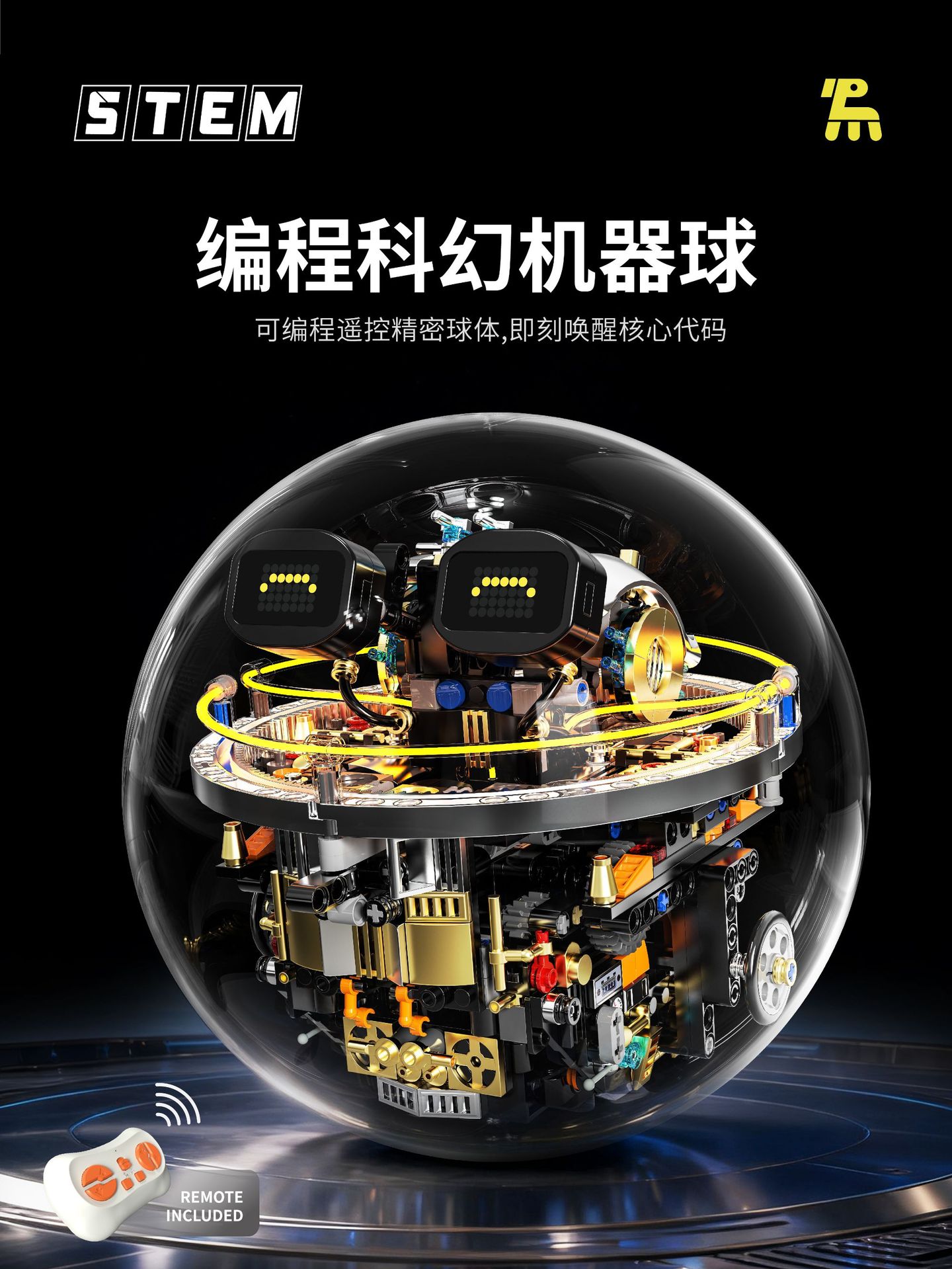 拓木T1113科幻编程球形机器stem玩具双遥控益智拼装积木男孩礼物