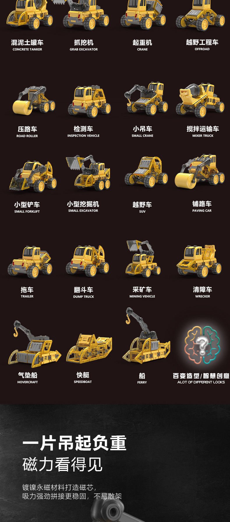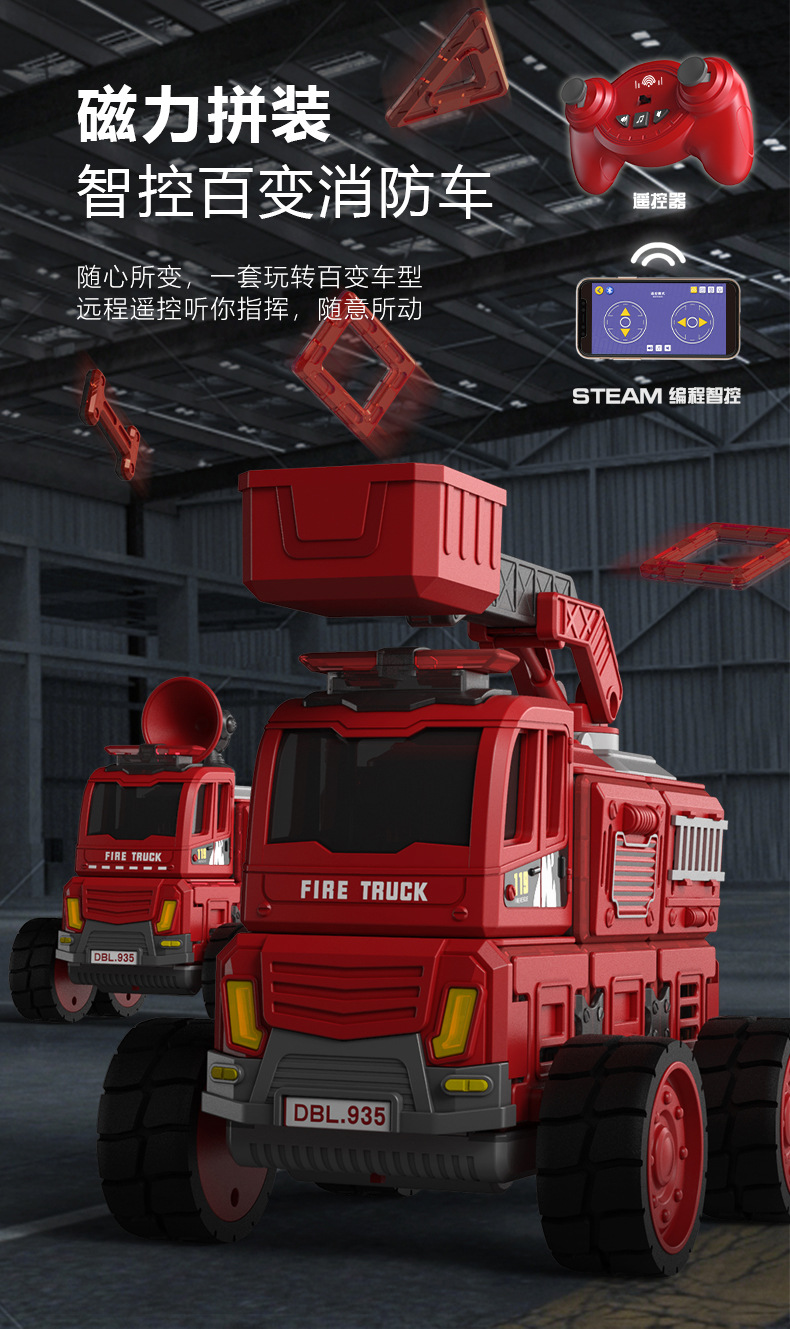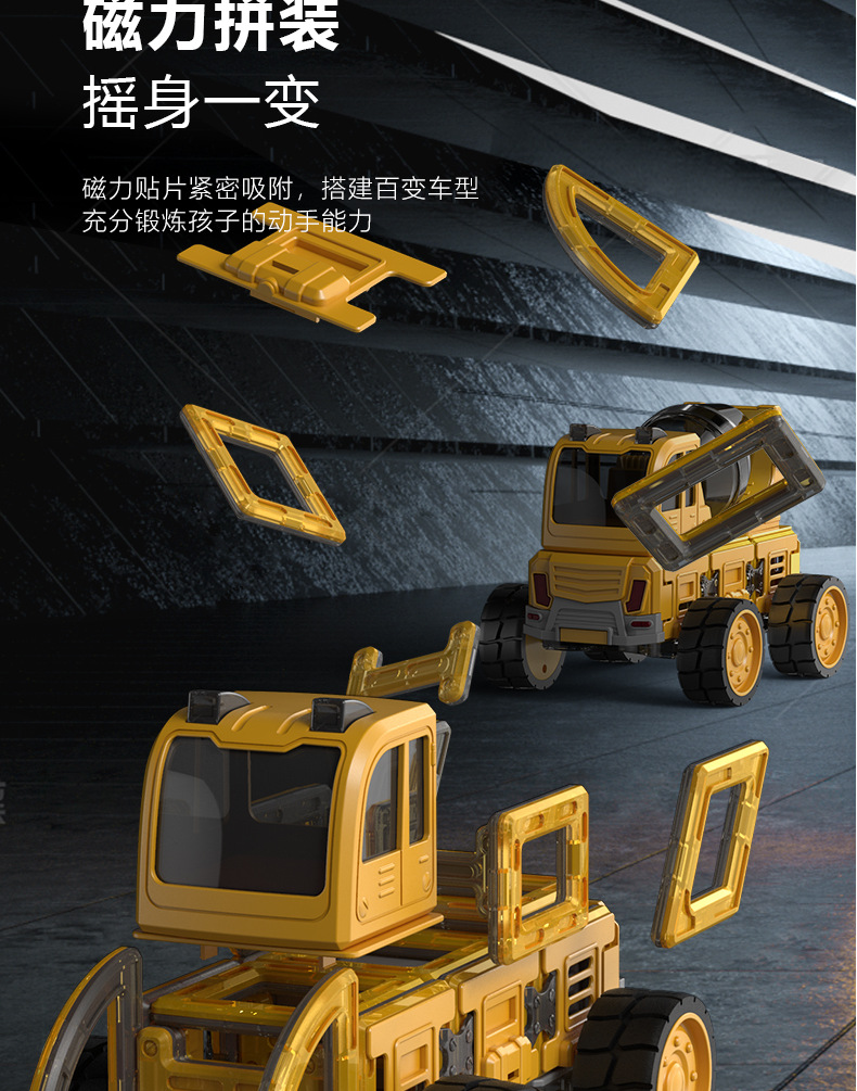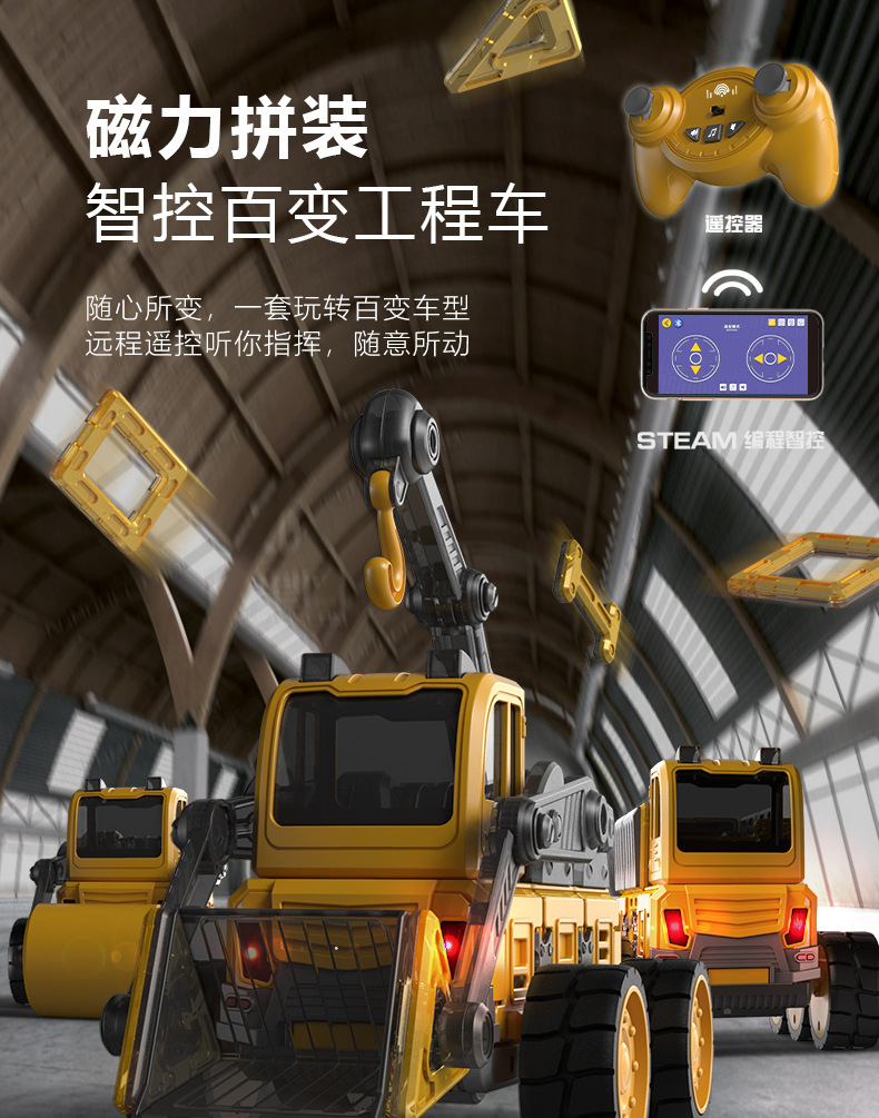 遥控编程磁力片积木百变工程车拼装儿童益智玩具男孩礼物