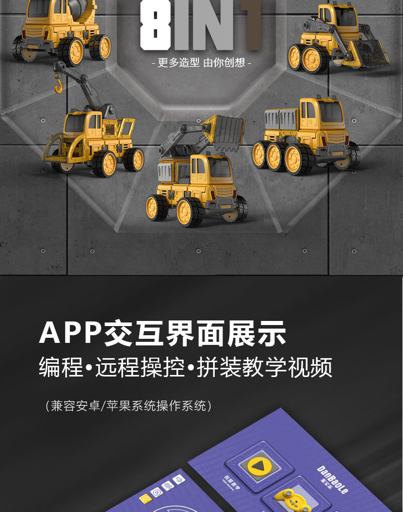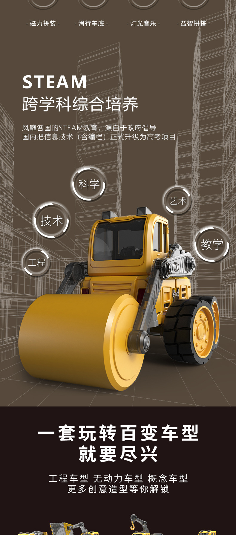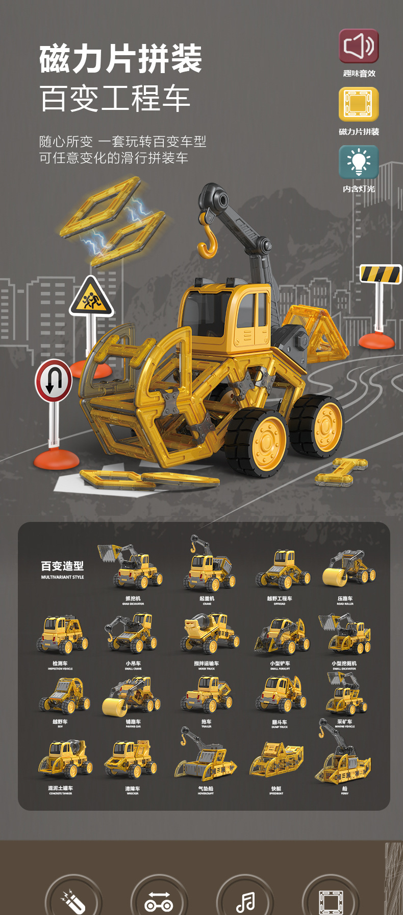 遥控编程磁力片积木百变工程车拼装儿童益智玩具男孩礼物