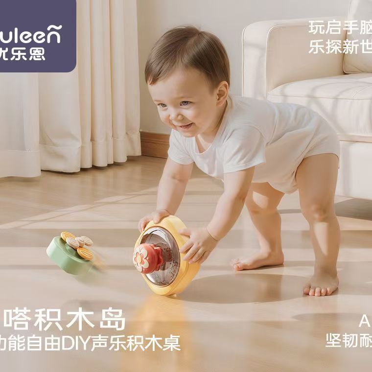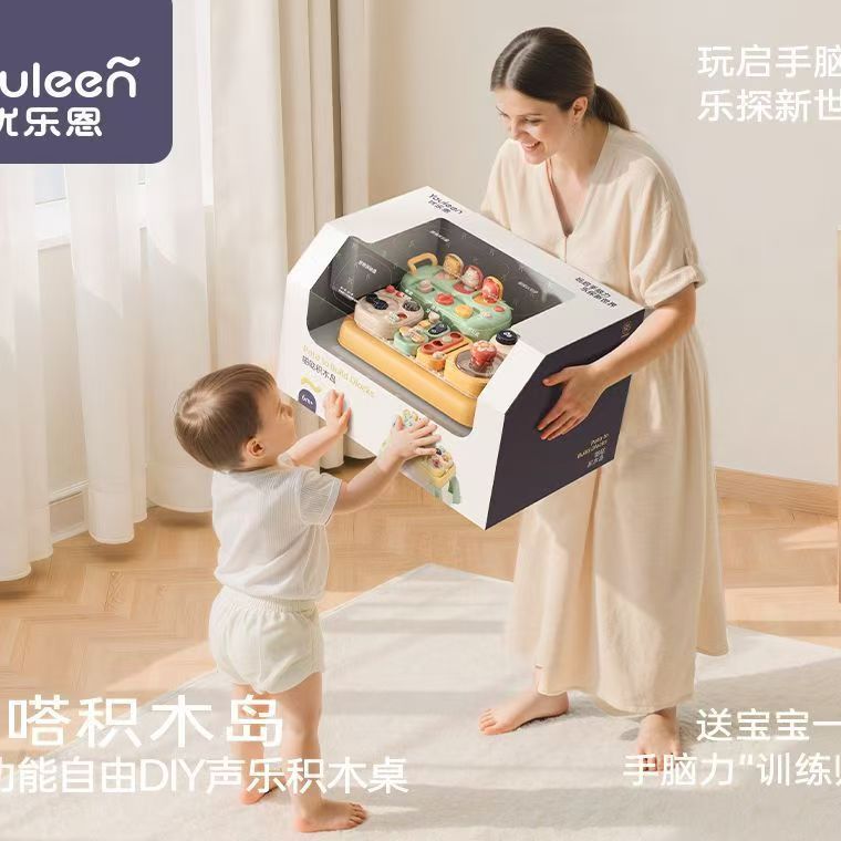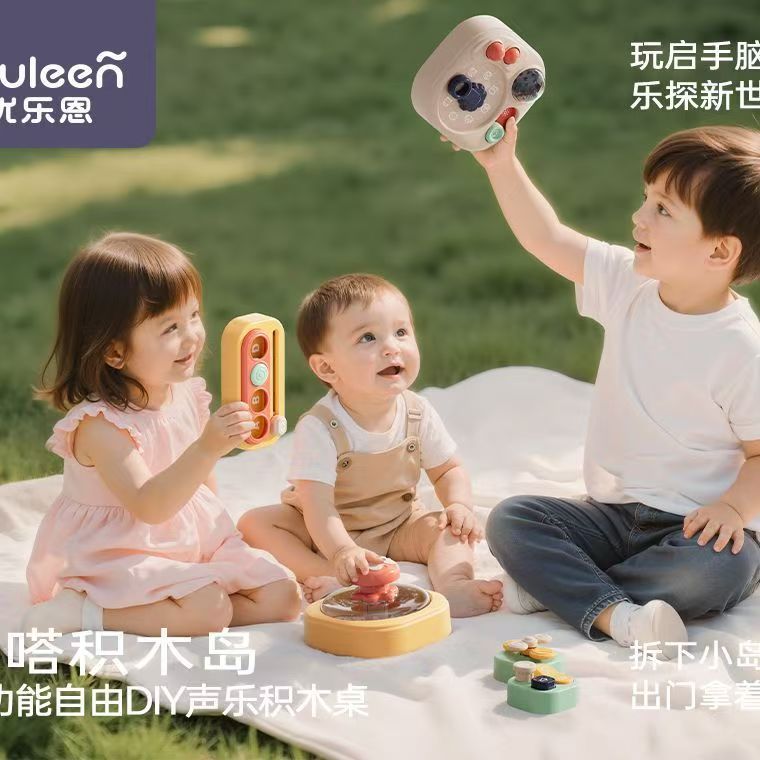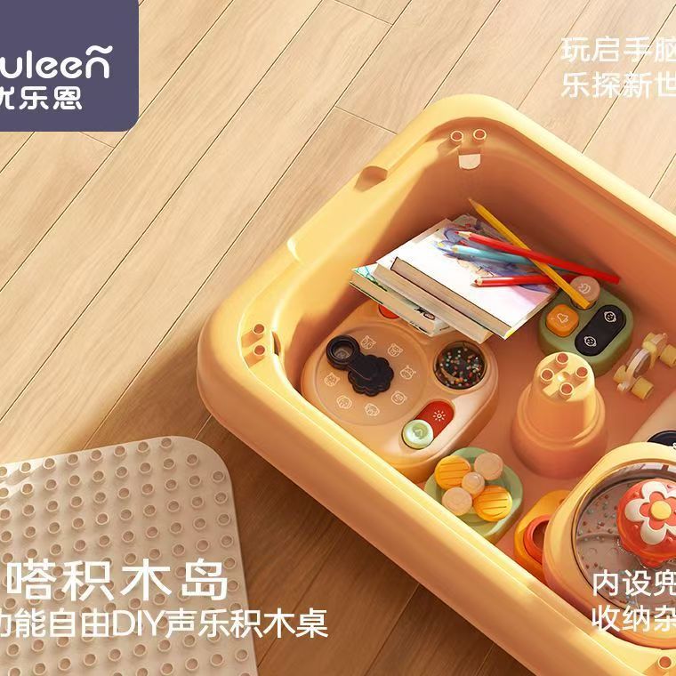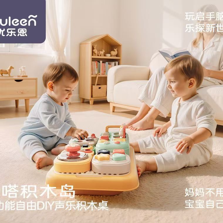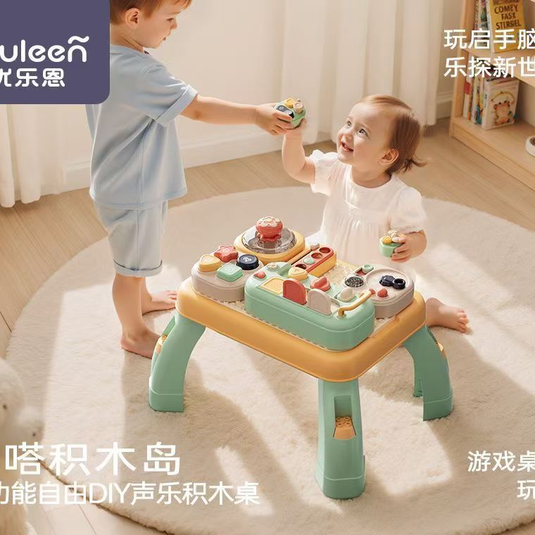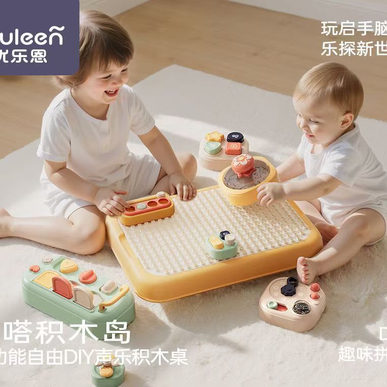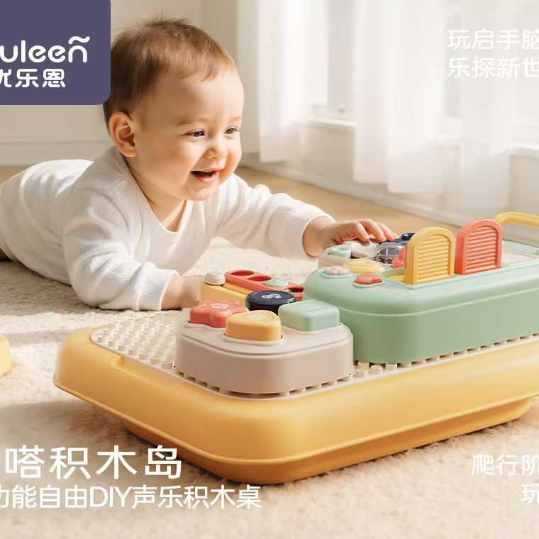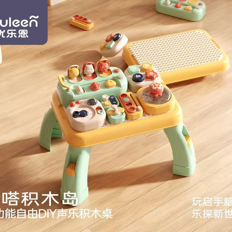 优乐恩啪嗒积木岛儿童多功能DIY声乐游戏积木桌男女宝宝早教玩具