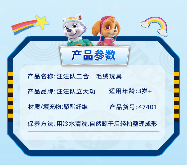 汪汪队立大功玩具二合一毛绒玩偶宝宝安睡陪伴公仔玩具儿童送礼
