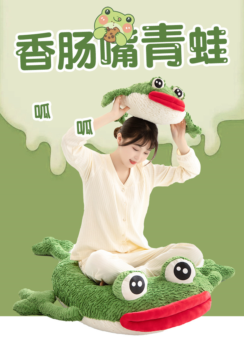 超大号香肠嘴青蛙抱枕坐垫卡通孤寡蛤蟆压花亲肤搞怪毛绒大抱枕
