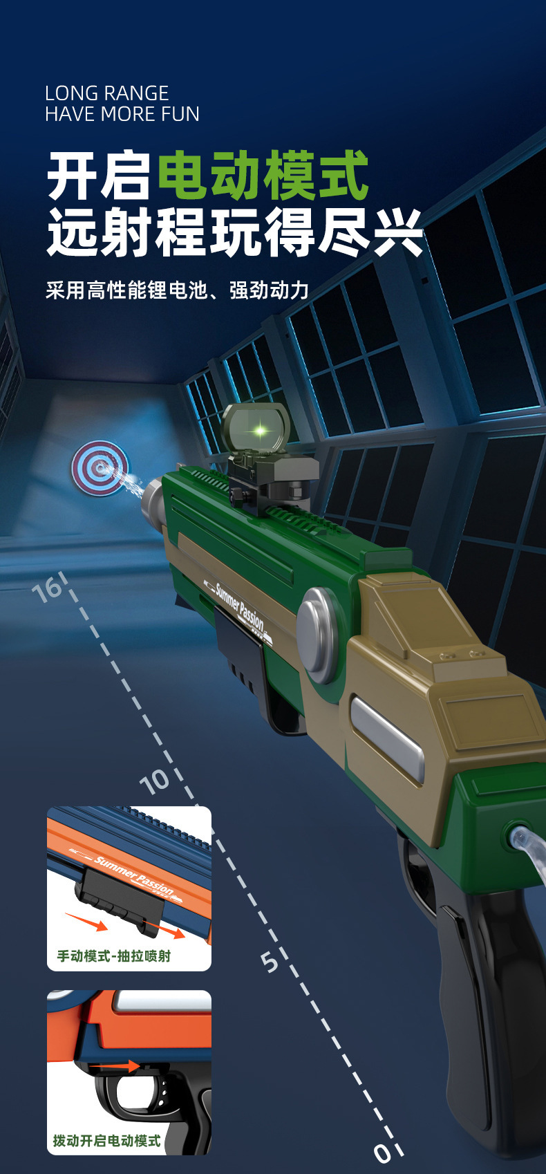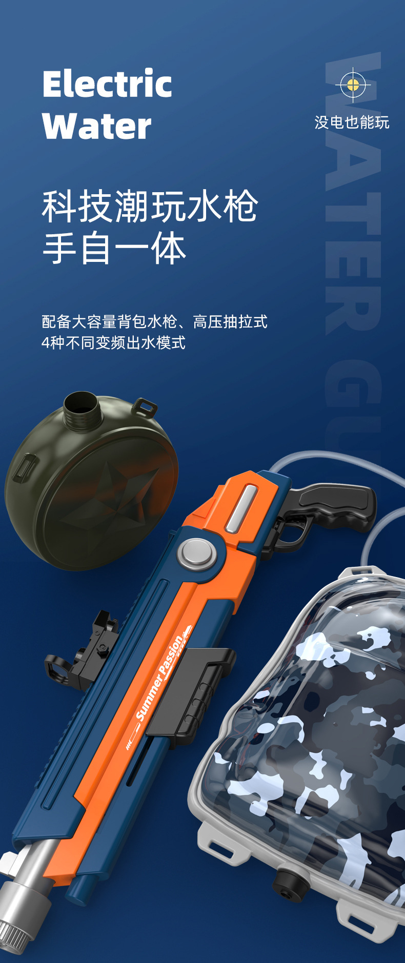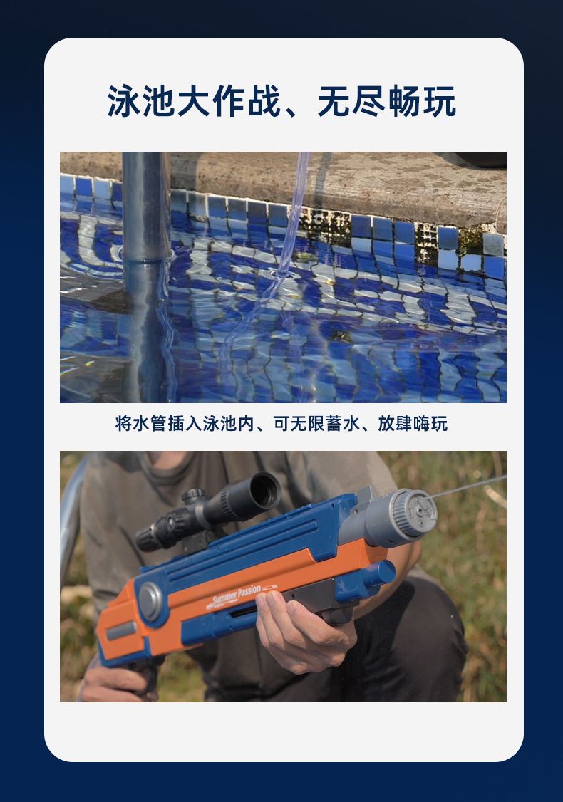 - 冰爆电动水枪玩具便携大容量喷水枪儿童夏季户外沙滩泳池水仗
